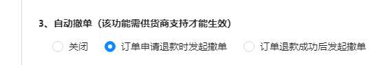 8.在阿奇索-发货设置-发货参数-采购设置,下拉, 找到自动撤单。 勾选 申请退款时撤单。