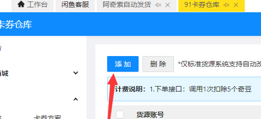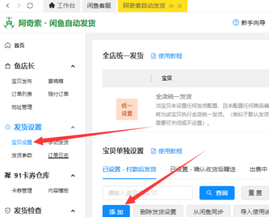 6.设置自动发货,点击添加按钮