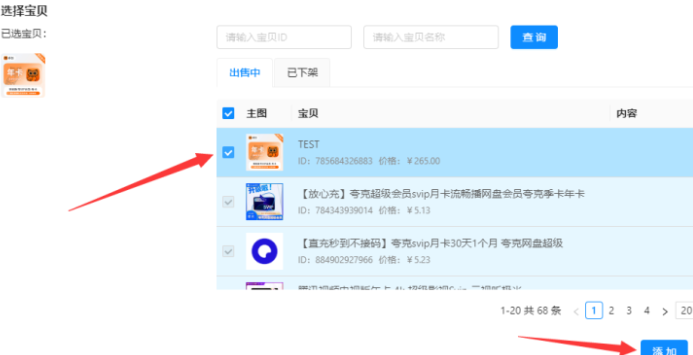 7.添加已经发布的宝贝,准备设置自动发货