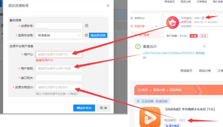 用户密钥:您在货源网站-个人中心-账号管理-API-重置密钥获取 ,或者询问您的对接人员。