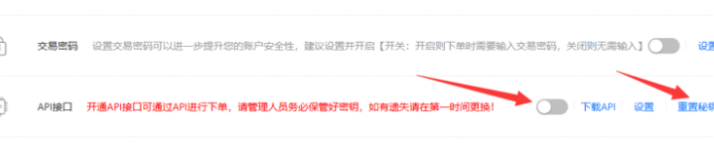 API接口要打开,重置密钥(特如无权限打开或重置密钥,请联系您的对接人员提供。)