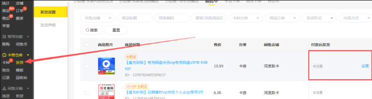 设置路径:卡密仓库-发货-去设置– 选择 货源