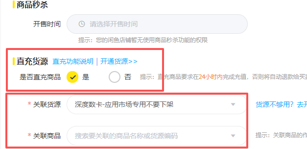 在商品编辑中,拖动到下方,会有直充货源,选择深度,填写深度的商品ID,即可关联